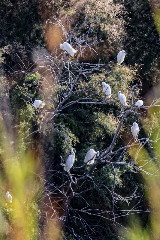 símbolo do parque; garça-branca-pequena (Egretta garzetta); cegonha-branca (Ciconia