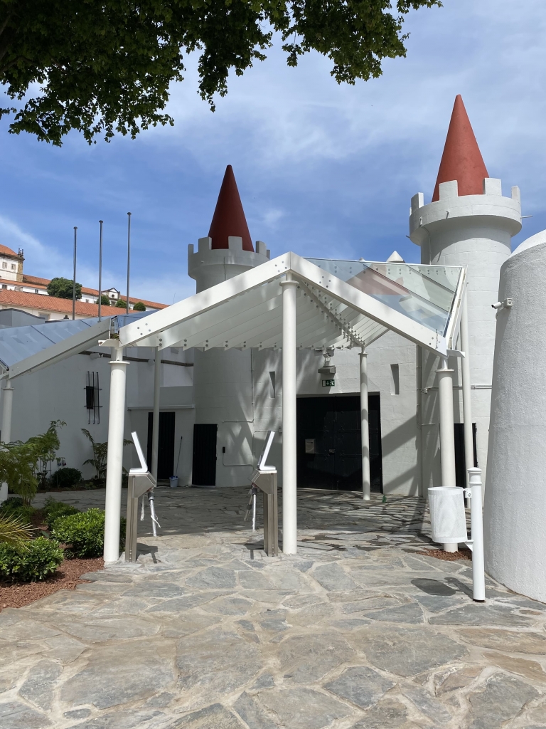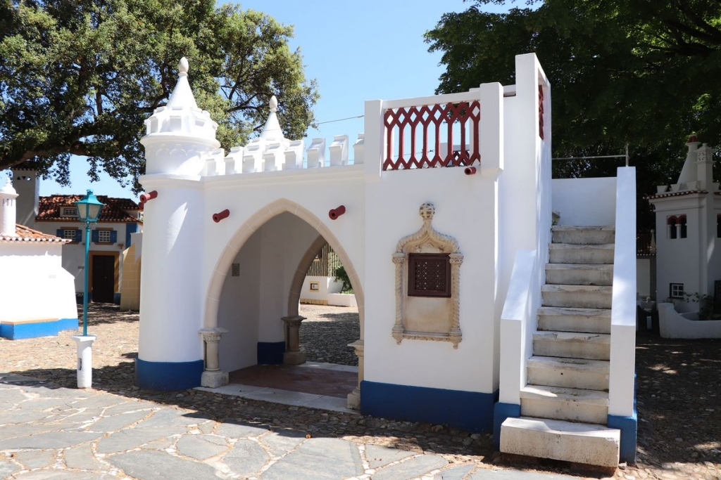 entrada, em pedra de corte irregular reaproveitada dos pavimentos antigos, o momento inicial de visita, mas também o ‘caminho de volta’ do que consideram ser o “Novo Portugal dos Pequenitos”, em homenagem ao mentor,