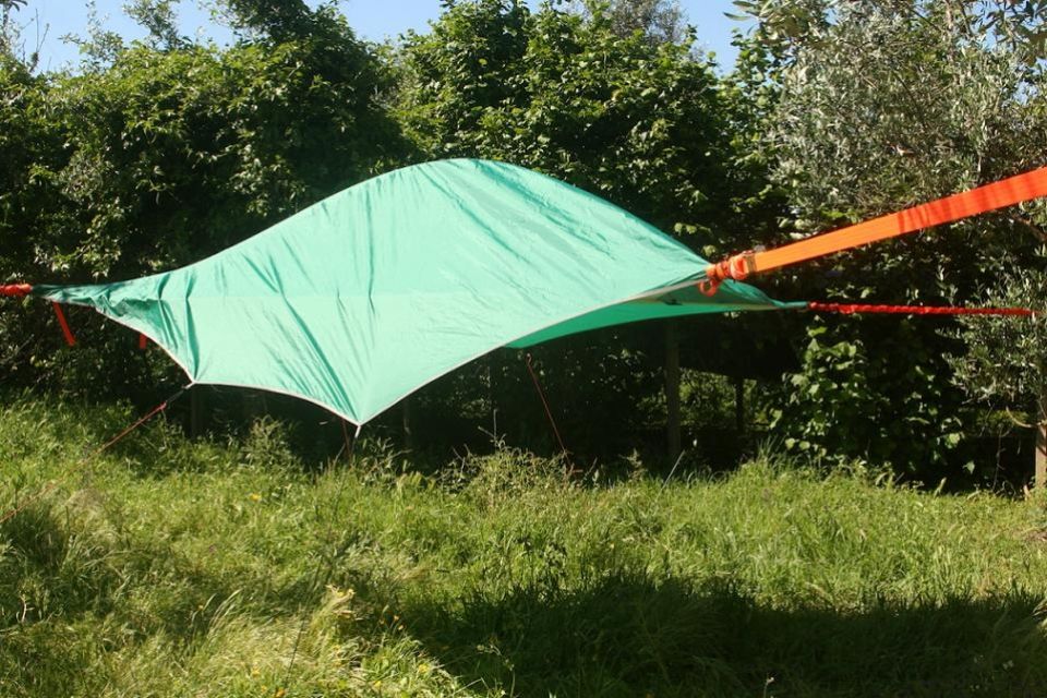 Tem capacidade para duas pessoas e custa (por dia/ocupante) apenas 20 euros. A estadia inclui saco-cama, lençol e almofadas e os hóspedes podem utilizar a casa de banho comum da casa, com direito a toalhas, bem como a cozinha. Pormenor importante: a tenda suspensa só estará disponível até setembro. Não é todos os dias que se pode cumprir o sonho de criança de dormir numa «casa» na árvore.