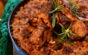 # Arroz de frango e farinheira (de Filipa Gomes, do programa “Prato do Dia”, na 24Kitchen) Ingredientes (4 pessoas): 2 chávenas de arroz vaporizado; 1 farinheira; 1 chouriço de carne; ...