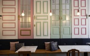 Uma parede forrada com portas de diferentes cores e feitios. Tijoleira de padrão axadrezado, em preto e branco. Pratos decorativos e quadros trazidos de casa dos avós. Estes são alguns ...
