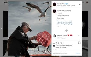 Nesta imagem, onde se vê Adelina, uma pescadora de 79 anos, rodeada de gaivotas à chegada do peixe, Rita retrata a estreita relação dos pescadores com “as suas companheiras de ...