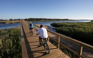 São dois passeios que ficam perto um do outro, especialmente em duas rodas. A Ecopista do Atlântico é um circuito com piso de alcatrão, algum de madeira, feito pela estrada ...