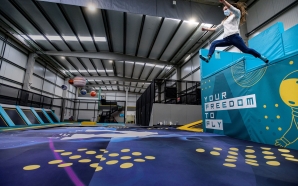 Saltar bem alto e fazer piruetas no ar ou deslizar a grande velocidade por um escorrega que mimetiza o tubo de neve são algumas das atividades do Hangar 2020 Fun ...