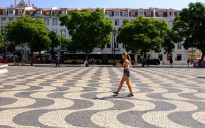 Dezenas de turistas agrupam-se à volta do Monumento ao Calceteiro, nos Restauradores, para tirar fotografias com o desenho da barca de São Vicente com dois corvos – o símbolo de ...