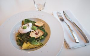 Pedro Rebelo dos Santos, 43 anos, inspirou-se nas memórias de estar com as avós a descascar favas para criar esta salada que surge nas entradas frias da carta do Glass ...