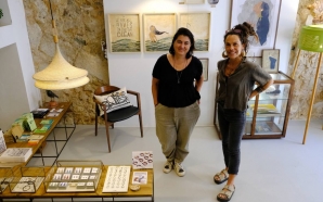 Tambores de máquinas de lavar roupa convertidos em candeeiros; uma maqueta tridimensional das armações de pesca de atum construída por um artesão da Fuzeta; um corvo em cerâmica desenhado pelo ...