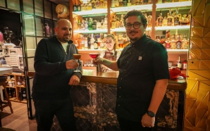 Apesar de não ir ao lume, a cafeteira em que é servido o cocktail Feather Boa Noah imprime um efeito surpresa no rosto do cliente, quando este leva o copo ...