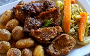 Carne de porco à portuguesa, solha frita com arroz de feijão, pernil assado, feijoada de chocos e arroz de pato são os pratos fixos que compõem, de segunda a sexta, ...