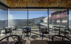 As janelas panorâmicas criam uma ligação íntima com a Serra da Estrela. No conforto do restaurante – conferido pela lareira e pelas centenas de estrelas em burel penduradas no teto ...