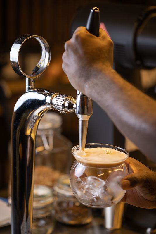 “Quando está em maior contacto com o oxigénio, o café fica mais claro e ganha sabores mais frutados. Por contrário, menos oxigénio faz com que o café ganhe mais corpo e notas mais amargas”, explica a responsável da loja, formada com baristas ingleses. Segundo Carina, o mesmo café pode expressar mais de uma centena de notas diferentes, conforme o modo como é extraído e servido.