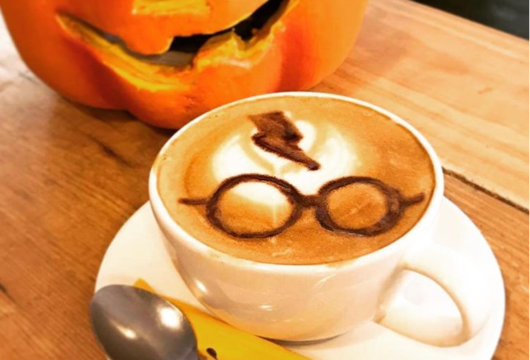À base de café e leite é adicionado caramelo salgado para enriquecer o sabor, e o topo do latte é decorado com desenhos alusivos ao universo Harry Potter, que «não são sempre os mesmos», nota Inês. Tanto podem ser as iniciais do jovem feiticeiro, como a mítica cicatriz em forma de raio, ou os óculos redondos.