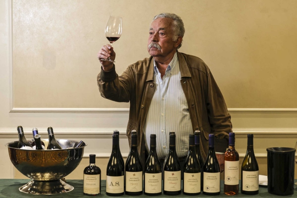 Nascido há 75 anos, em Vila Nogueira de Azeitão, António Saramago já foi responsável por dezenas de projetos. Há 20 anos, criou uma marca própria, na sua terra natal, com os filhos António, também enólogo, Nuno e a mulher, Ausenda. Produz aqui vinhos, onde se destaca a casta Castelão e Moscatéis de Setúbal.