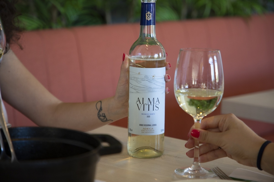 Encaixadas entre o mar e a encosta da Serra de Montejunto, numa faixa costeira que se estende para sul até ao concelho de Mafra, as vinhas estão plantadas em solos predominantemente argilo-calcários e conseguem abranger vários tipos de climas e humidade. Nas parcelas mais próximas do mar estão os vinhedos de Arinto, que ali adquirem alguma influência marítima, e na parte mais interior o Fernão Pires, com os seus aromas mais vincados. De um blend em partes iguais destas duas castas nasce o Alma Vitis Branco, lançado há perto de 20 anos. “É uma das marcas mais antigas de vinhos regionais de Lisboa, e das marcas mais antigas da nossa adega”, nota Paulo Rodrigues, responsável comercial da adega.