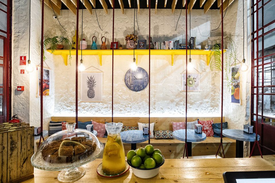 Para trincar, existem alguns snacks, e aqui a preferência vai, igualmente, para produtos regionais e frescos, sublinha João Gomes, acrescentando que nos wraps e saladas é usado atum, pargo ou outro peixe da costa – o que houver no dia. Os doces também fazem parte da oferta: há bolos confecionados segundo receitas caseiras, por exemplo, de banana e aveia, sem açúcar nem glúten.