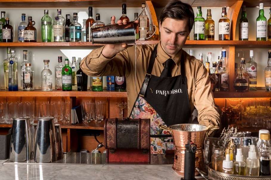Sim, abri o Paradiso em Barcelona há ano e meio. Temos as nossas bebidas de assinatura, muitas são um twist de um clássico, mas sempre com um lado muito sensorial. Introduzimos nos cocktails fumo, incenso, vapor, gelo… Queremos estimular mais do que um sentido num só cocktail. Para além disso temos um serviço genuíno e toda a atmosfera do bar speakeasy fala por si.