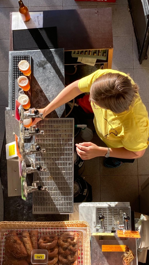 Apensar nos companheiros caninos, há sempre uma taça de água na esplanada da A.M.O. Brewery, que acaba por também matar a sede aos cães que estão apenas a passear na Rua Bernardim Ribeiro, conta Margaret Orlowski, garantindo que os cães são sempre bem-vindos à esplanada e ao mezanino interior da A.M.O., que se desdobra em fábrica e bar. Margaret já fazia cerveja no Canadá, de onde é natural, mas o passatempo veio consigo na bagagem para Lisboa, onde se instalou em 2012. As experiências continuaram por cá, até que deram origem ao espaço físico da A.M.O., em 2017.