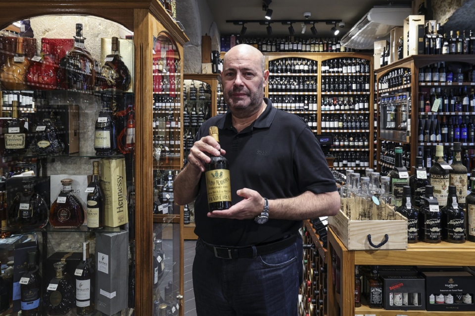 Jaime Vaz, o dono da Garrafeira Nacional, com três das muitas garrafas raras da sua loja.