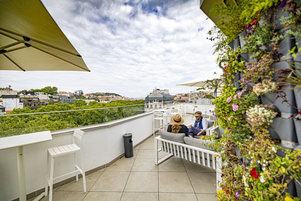 O jardim vertical que acompanha grande parte da fachada do bar, vestido de flores, plantas e ervas variadas, combina com a vegetação que se avista do topo do Turim Boulevard Hotel, nomeadamente o arvoredo alto da Avenida da Liberdade e o Jardim Botânico de Lisboa. Mas não só se verde se fazem as vistas panorâmicas do Yuppie, o novo rooftop alfacinha do qual se avistam monumentos e espaços públicos como o Castelo de São Jorge, a Sé de Lisboa, o Tejo, o Miradouro de São Pedro de Alcântara e a Praça da Alegria, por exemplo.