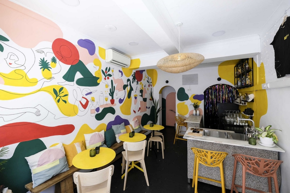 Nesta nova aventura, junta-se a ele a namorada, que trocou a formação em Artes pela coquetelaria. Tudo começou como uma oportunidade para juntar dinheiro, num part-time, mas o bichinho falou mais alto. “Adoro a energia desta área, onde conseguimos conhecer pessoas diferentes e isso faz-nos viajar também”, conta a jovem que cresceu em Almada, e que ajudou a pintar o mural colorido que veste o Nexo ½ Bar, da autoria de Alice Prestes. “Ambos temos um gosto muito similar, da comida à bebida e até à decoração da casa”, ri-se a jovem.