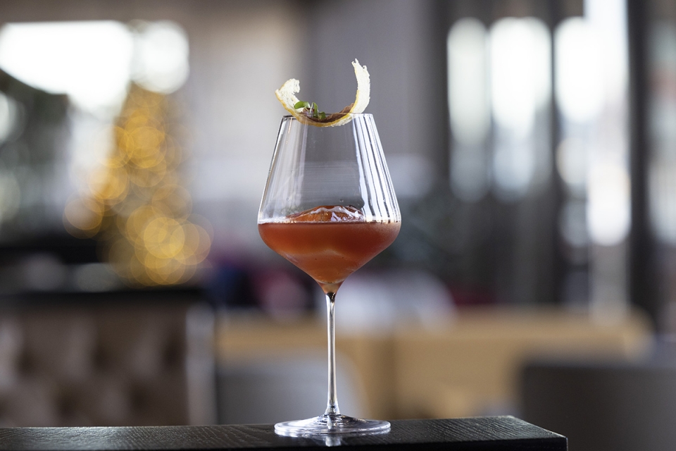 Para o cocktail que entra agora na carta como sugestão de inverno, o bartender Fábio Miranda, que há dois meses entrou para o projeto WOW como manager dos espaços de restauração, idealizou uma bebida com sabores quentes. Esta é elaborada com ingredientes que remetem para as épocas frias, como o “mel” de figo, sherbet de toranja, um “citrino elegante e aromático”, e vinho do porto. Neste caso, a sugestão do vinho a utilizar foi de Priscila Haddad – o Krohn Colheita 2005, “um tawny bastante intenso”. A bebida é densa e a cor lembra “os fins do dia de inverno, à lareira”.