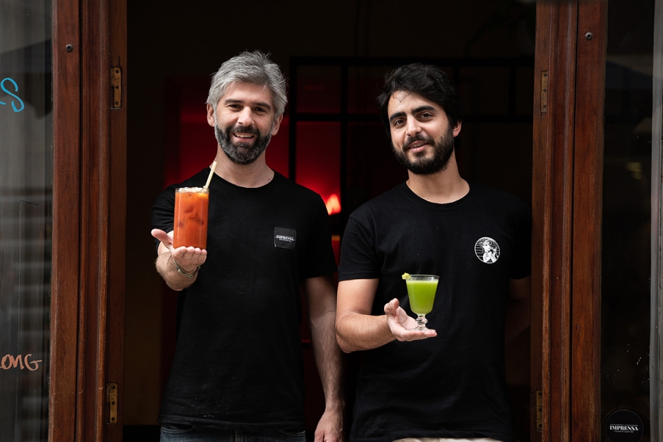 A cor encarnada acompanha o sabor intenso deste Bloody Maria, capaz de deliciar os apreciadores de um dos grandes clássicos da mixologia. “Este cocktail não é da nossa autoria. Nós pegámos numa versão do Bloody Mary feita com tequila [em vez de vodca] e fazemo-lo com tequila e mezcal, e adicionamos uma ostra como garnish”, explica Bruno Cabral, um dos bartenders e sócios do novo Imprensa, desde junho na Baixa.