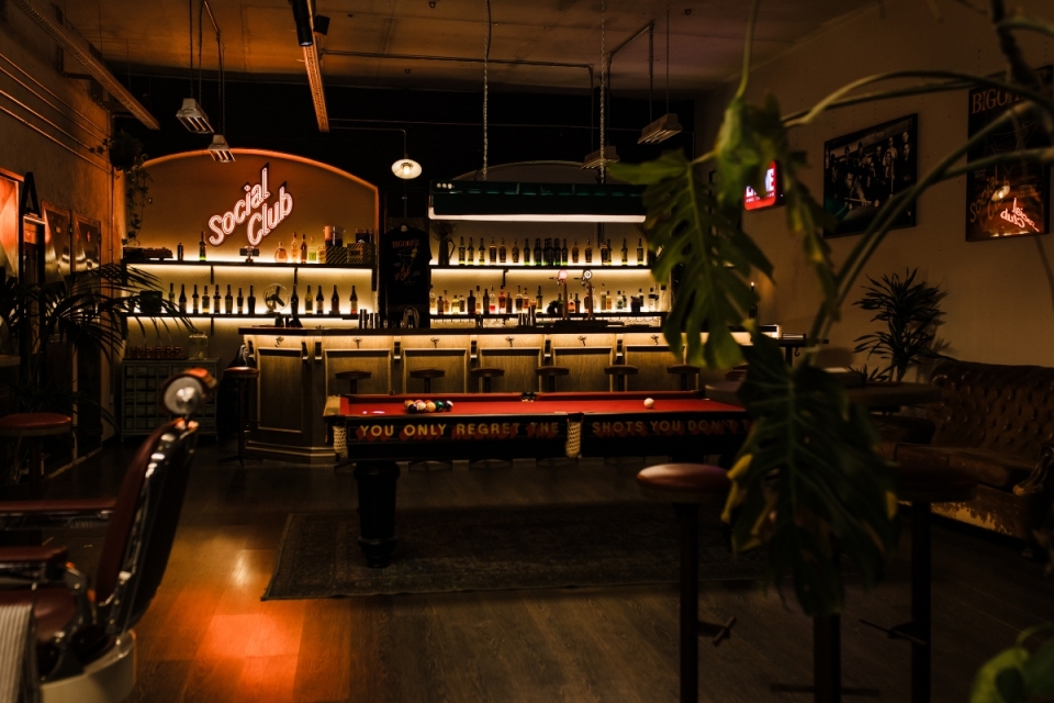 Antes de ser Social Club, a Bigorna já era barbearia. Na Foz do Douro e na Rua Alexandre Braga, encostado ao Mercado do Bolhão. É desse universo que vem Nuno Silva. Inspirado por gostos (pelos speakeasies, pelo bilhar) e circunstâncias (a generosa extensão do rés-do-chão do edifício da Baixa e a necessidade de rentabilizar área numa zona da cidade em que as rendas não são para brincadeiras), explorou as potencialidades de um espaço de ressonância industrial, aliando-se a uma brilhante autora de cocktails, Lia Igreja.