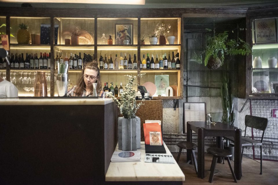 À semelhança do que acontece na decoração, no bar só há espaço para bebidas de produção nacional. Aos vinhos, mais de 20 referências das regiões continentais e também dos Açores – “a filosofia é não ter vinhos comerciais que facilmente se encontram nos supermercados”, explica Ana – juntam-se as cervejas artesanais e também cocktails de autor. É o caso do Droga, que leva rum da Madeira, licor de Singeverga, limão, xarope de maçã, pepino e hortelã. Para acompanhar há petiscos, como tostas e tábuas de queijos e enchidos, servidos durante toda a noite, para que não haja fome enquanto se aprecia a música de fundo, que varia entre o jazz, bossa nova ou techno.