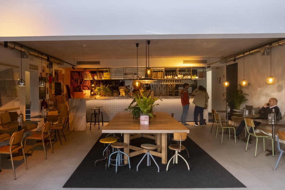 De resto, o bar quer promover a socialização também através da música, convidando os clientes a escolher um dos muitos vinis que a casa possui para ser a música de fundo – e aqui só se ouve mesmo música nesse suporte. Além da cerveja, há várias propostas de vinho, incluindo de pouca intervenção, e também kombuchas (com e sem álcool), sidra e cocktails à pressão: mescal tangerina, uísque framboesa e gin tónico.