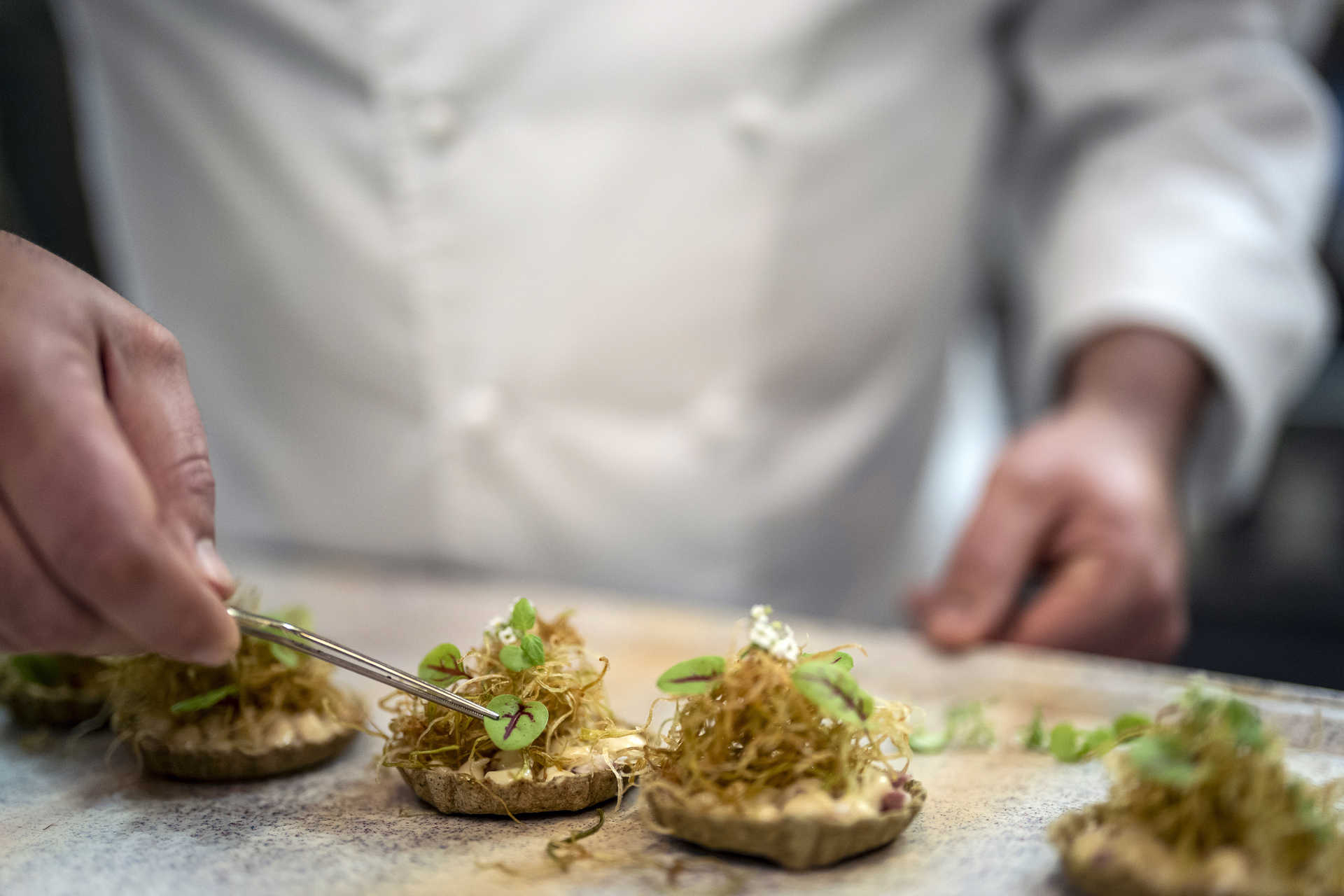 A proposta é trabalhar o produto local, a sazonalidade e homenagear várias regiões do país. É dada prioridade aos produtos que saem da quinta – como os vinhos, únicas referências da carta – e vegetais. Normalmente, é um deles que brilha nas boas vindas do chef, iniciando o menu de degustação de seis momentos. Atualmente, é a couve-flor a protagonista deste autêntico festival de finger food. Em pickle, em croquete, em mousse ou souflé, são nove surpresas que preparam o estômago para o que se segue no Menu Lemos.