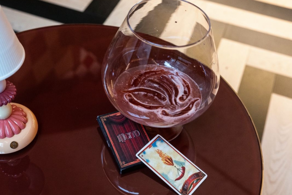A carta dos cocktails de assinatura é apresentada em forma de baralho de cartas de tarô, de estética vintage a condizer com o bar. Na carta do Free Fall vê-se um balão de ar quente a transportar uma malagueta, enquanto é consumido pelas chamas. Antecipa, assim, a sensação que provoca a bebida, tanto no aspeto – é servida num copo balão gigante, com várias malaguetas inteiras lá dentro – como no sabor, entre o picante que aquece, do thai chili, e uma certa frescura do gengibre.