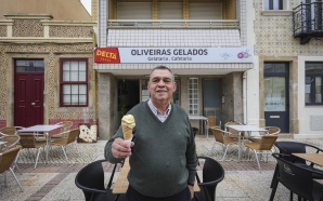 Os sabores da época estão à vista na montra da gelataria-café na avenida central da Praia do Furadouro, em Ovar. Caldeira de Natal, abóbora com castanhas e nozes, aletria, bolo-rei, ...