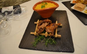 “Os anhos, preparados para este festival, são criados em pastoreio livre nos montes e campos locais, entre a erva e a carqueja que dão um toque singular à carne”, lê-se ...