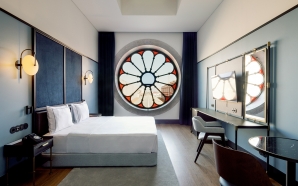 A luz branca da manhã irrompe pelas janelas curvilíneas da suíte do Eurostars Universal Lisboa. É um convite a apreciar a paisagem da Lisboa moderna do Parque das Nações, abarcando ...