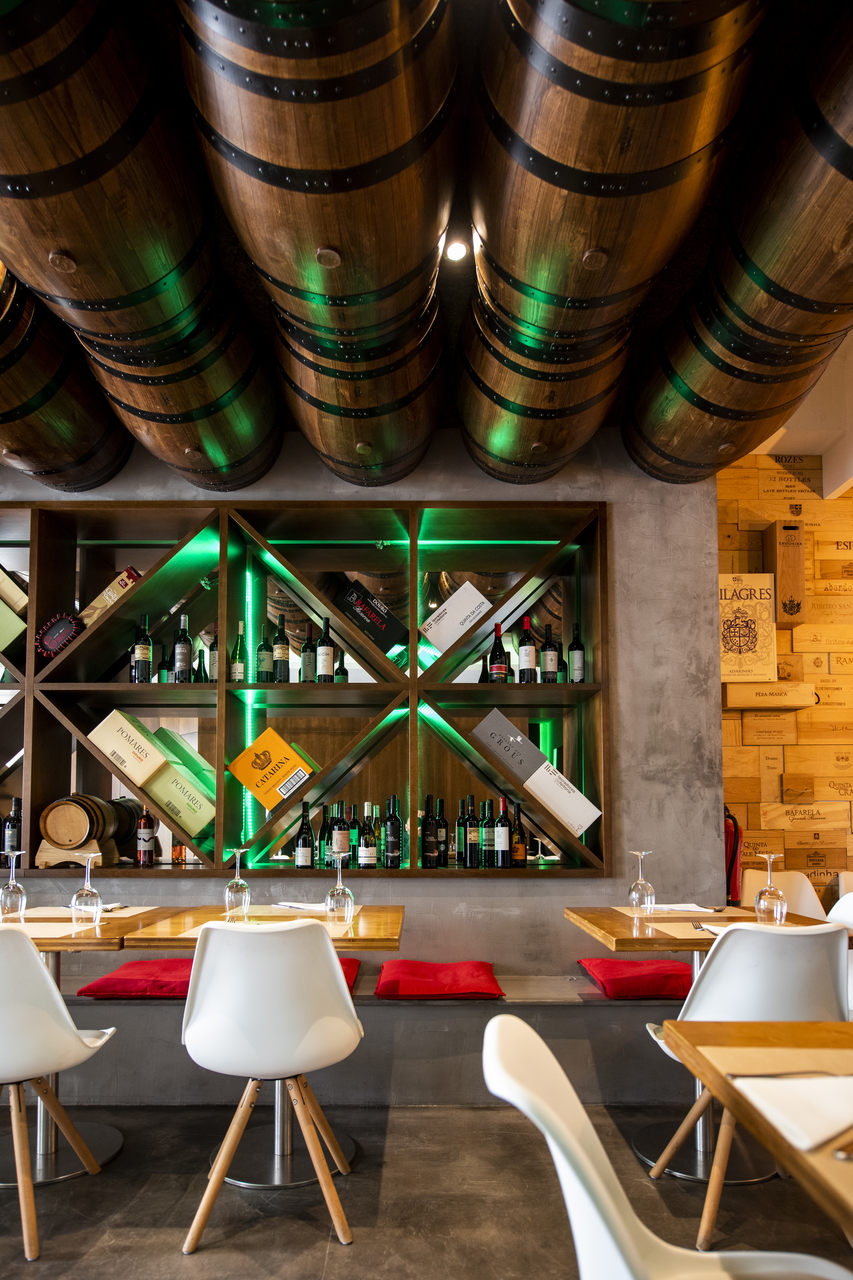 Um ror de anos a fazer francesinhas deixou várias certezas a Filipe Sousa. Uma delas é que muita gente prefere acompanhar o prato com vinho, em vez de cerveja. Quando abriu o espaço em Leiria, quis apostar também nesse campo. O teto é bom exemplo dessa importância, decorado com pipos de vinho.