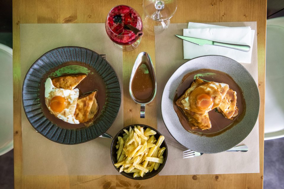 De modo que, quando regressou a Leiria, em 2017, não teve dúvidas do caminho que queria trilhar na restauração. Concentrou-se na francesinha tradicional, mas rapidamente criou variações. Na prioridade que já dava aos produtos locais, incluiu uma iguaria da região que faz as delícias de quem lá vai – a morcela de arroz, juntando-a na “francesinha à Adega”. Acrescenta à lista uma variedade que vai desde a francesinha de bacalhau à vegetariana. E guarda para o final da refeição a francesinha de chocolate, um bolo húmido intercalado com creme de natas e rematado com frutos vermelhos. Paula Sofia Luz