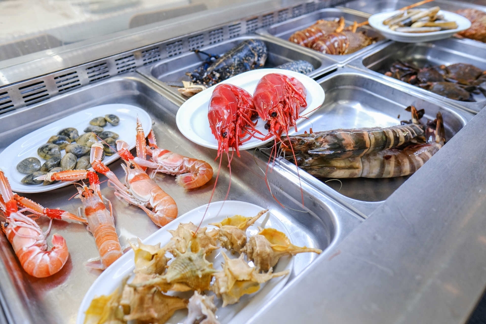 Pedro Gonçalves, gerente e genro do fundador homenageado numa obra de arte na parede, apressa-se a mostrar o marisco do dia, exposto numa montra à entrada, e em sugerir aquela que é a combinação mais pedida: presunto Pata Negra, cesto de pão torrado, gambas ao alho que chegam à mesa ainda a fritar no azeite; gambas do Algarve cozidas com sal e outras médias, grelhadas.
