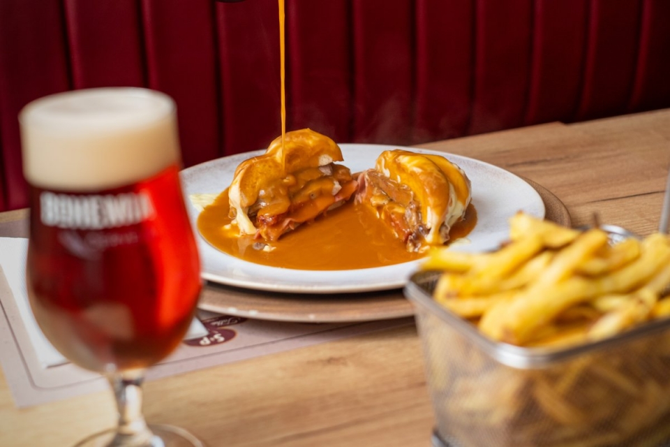 Houve vários testes até chegar à francesinha de regueifa como a conhecemos hoje no Sandes & Pratos – uma receita que, segundo Israel, se encontra registada, e alia àquele pão específico fiambre, mortadela, queijo, bife do acém e enchidos dos talhos Leandro, permitindo apreciar cada elemento. “É uma francesinha que se saboreia melhor, porque se sente mais o pão, os enchidos e o bife, por não estar tudo encharcado de molho”, defende, acrescentando que esta versão, lançada em março do ano passado, é a que tem tido mais saída.