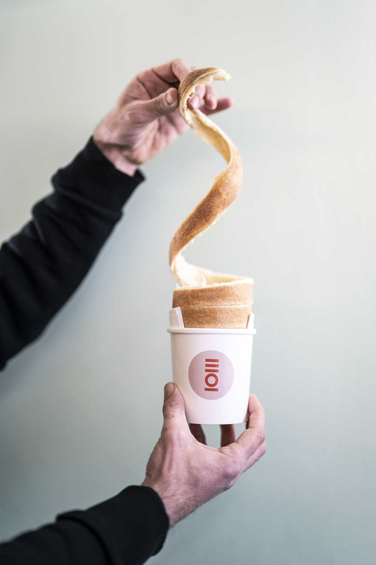O passo seguinte foi aprender como se faziam aqueles bolos originários da Transilvânia, na Roménia, e presença forte noutros países do leste europeu, como explica. “Em junho, já estava outra vez na Polónia, a fazer formação.” E em outubro inaugurou o espaço A Leste, no Quebra Costas. “Ser na zona histórica era fundamental”, defende, porque o produto-estrela “presta-se muito ao passeio, é pegar e levar”. Mesmo o café é vendido nesse registo. Não há louça nem lugares sentados, optando alguns clientes por se acomodar lá fora, nas famosas escadas que conduzem à Alta universitária.