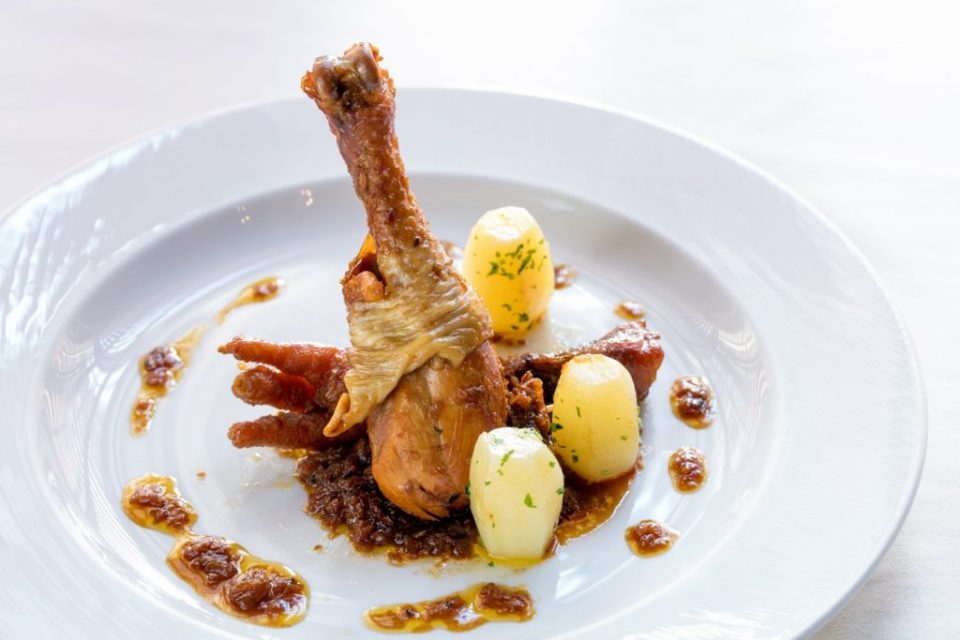 Fechamos com esta receita a prestação do transmontano chef Marco Gomes, justamente versando uma das proteínas mais embaraçosas para a maioria dos chefs, pela dificuldade de processamento que encerra e pela complexidade da finalização que implica. São muito poucos os que levam os galos para terrenos favoráveis e que lhes permitem exprimir de forma sistemática e sápida os seus conhecimentos. O caldo de frango que Marco Gomes começa por puxar como fundo complementa na perfeição, crescendo, a libertação lenta que a carne do galo vai produzindo. Regalo para o palato, maravilha para todos nós.