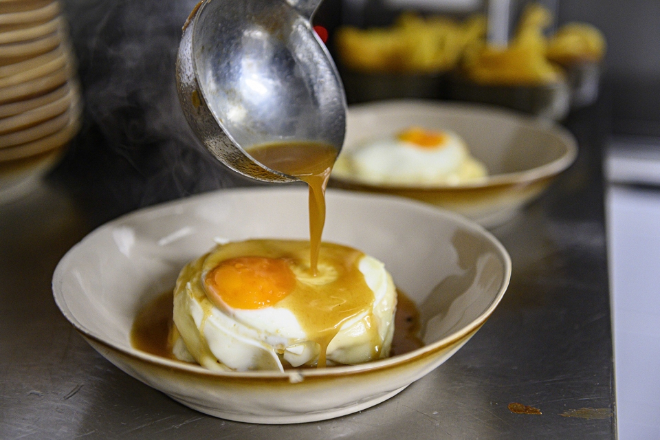 “Nunca sofreu grandes alterações, foi projetada assim”, conta Tiago Passos, bisneto do fundador do restaurante António Abrantes Jorge, que gere agora com o irmão Francisco. A diferença é que antes não era propriamente uma refeição, foi pensada para ser lanche ou ceia”, diz. Talvez por isso, não era comum acompanhar com ovo e batata frita.