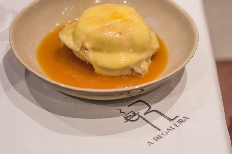 Quem for à nova Regaleira, mesmo ao lado da original (Rua do Bonjardim), num edifício totalmente renovado, pode não reconhecer a arquitetura da casa anterior, mas irá reconhecer o resto: os funcionários são os mesmos, assim como a carta e as francesinhas. Tendo sido aqui criada em 1952 pelo cozinheiro Daniel David da Silva, a francesinha é servida na sua versão original, em pão biju e com lombo de porco, e na versão que mais tarde se popularizou, com pão de forma e bife de vaca. A “sanduíche” é completada com queijo, fiambre e com a salsicha fresca e a linguiça da Salsicharia Leandro, como manda a tradição. O molho que a cobre é picante e guloso.