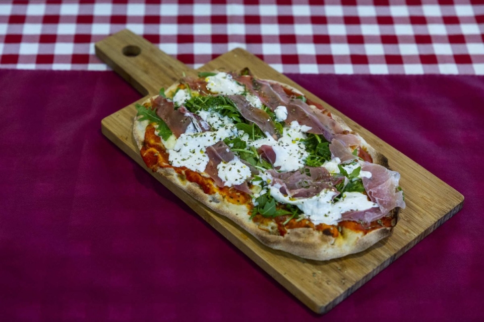 David Mille explica as diferenças. Enquanto a massa da piza é feita com farinha de trigo, fermento e água, a da pinsa “é uma mistura de três farinhas: arroz, soja e trigo. Não se utiliza fermento e fica 72 horas a levedar”. O resultado é uma massa crocante e leve. E não é redonda. “Pinsere, em latim, quer dizer esticar, por isso ela é mais oval. Esta é uma receita antiga que recentemente foi recuperada e agora é famosa em todo o mundo”.