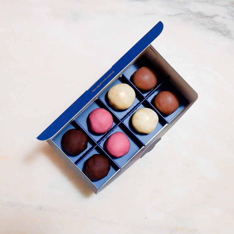 Cada caixa tem oito trufas, sendo a mais vendida a mix, que reúne as quatro variantes. Os respetivos recheios servem agora de base a um produto novo: o ovo de Páscoa para comer com colher, cuja entrega é grátis no Grande Porto (Porto, Maia, Matosinhos e Vila Nova de Gaia), na próxima sexta-feira, 2 de abril. Os ovos não seguem por correio, por não haver garantia, por enquanto, de que chegassem nas devidas condições.
