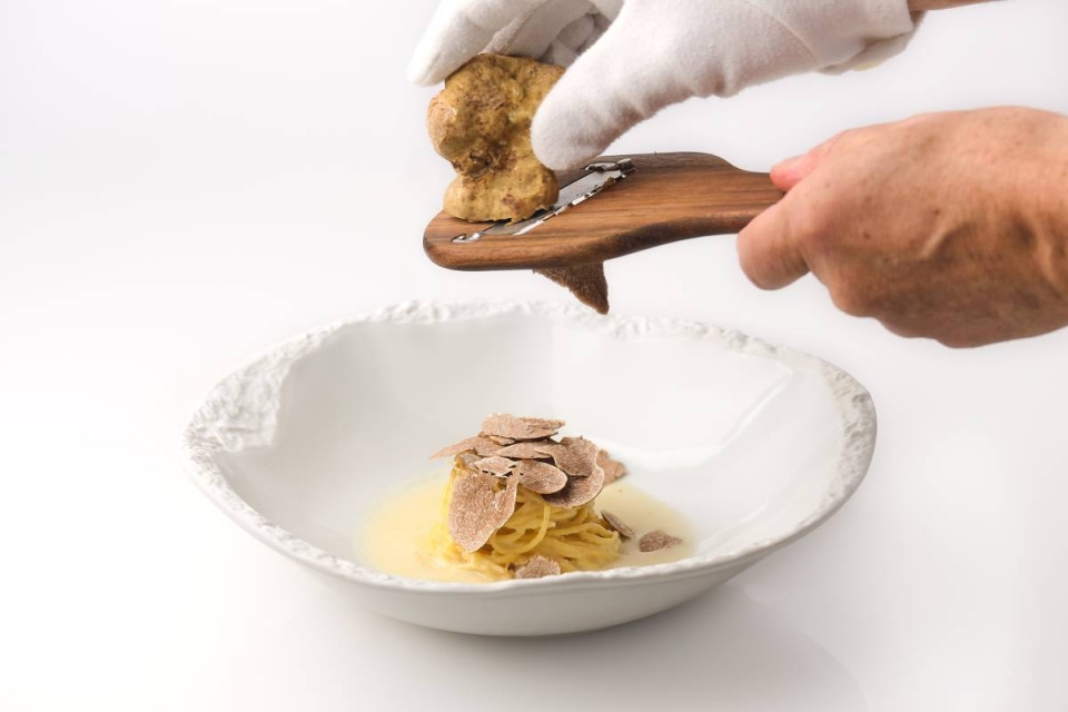 No restaurante Varanda, situado no hotel Ritz Four Seasons, no Parque Eduardo VII, a trufa branca integra um menu especialmente concebido pelo chef Pascal Meynard, confesso fã deste ingrediente raro e exclusivo. Ao todo são seis os pratos disponíveis (cujos valores começam nos 29 euros, para uma sobremesa), todos com trufa de Alba na sua composição. Um deles é o tagliolini (a lembrar a aletria) com molho de queijo mascarpone e parmigiano reggiano, terminado com trufa branca de Alba ralada no momento com recurso a uma mandolina.