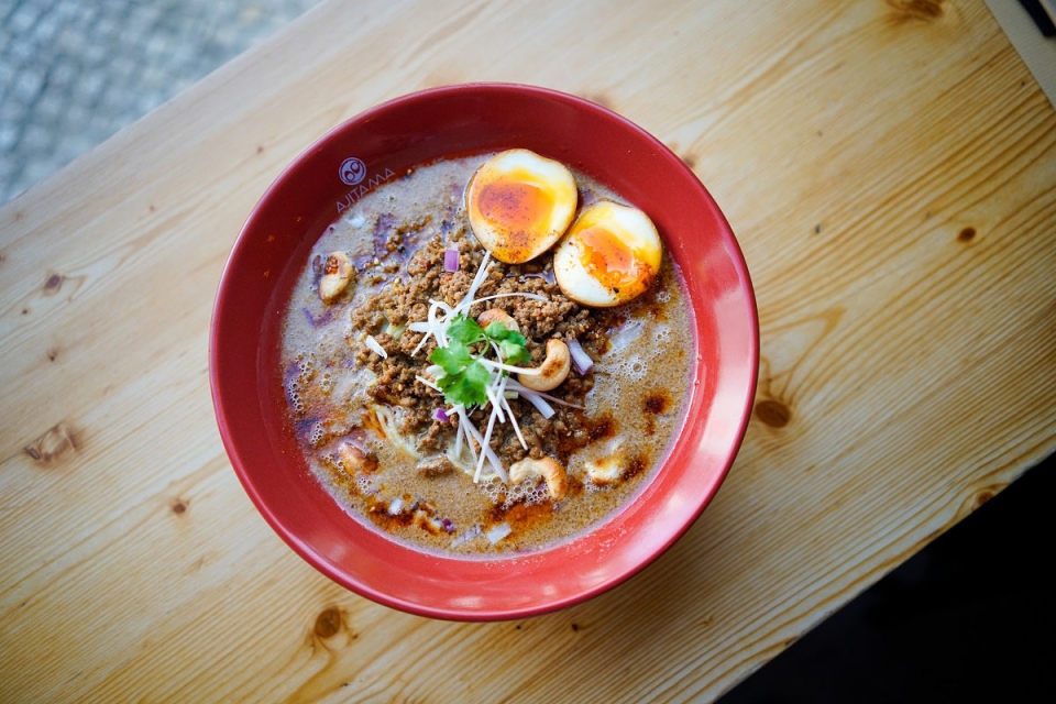 Nos últimos sete anos, o percurso tem sido feito de passos firmes e o Ajitama já é uma das moradas incontornáveis na capital quando se fala em ramen. Em 2015, a dupla António Carvalhão e João Ferreira criou o primeiro supper club de ramen em Portugal, aqui num registo em casa, mais intimista, e em 2019 chegou a primeira morada física, alavancada pelas filas de espera de mais de 1000 comensais, na Avenida Duque de Loulé. O crescente procura leva-os agora a ganhar uma segunda casa (maior, com capacidade para 80 pessoas), desta feita na Rua do Alecrim, a meio caminho entre o Cais do Sodré e o Chiado.