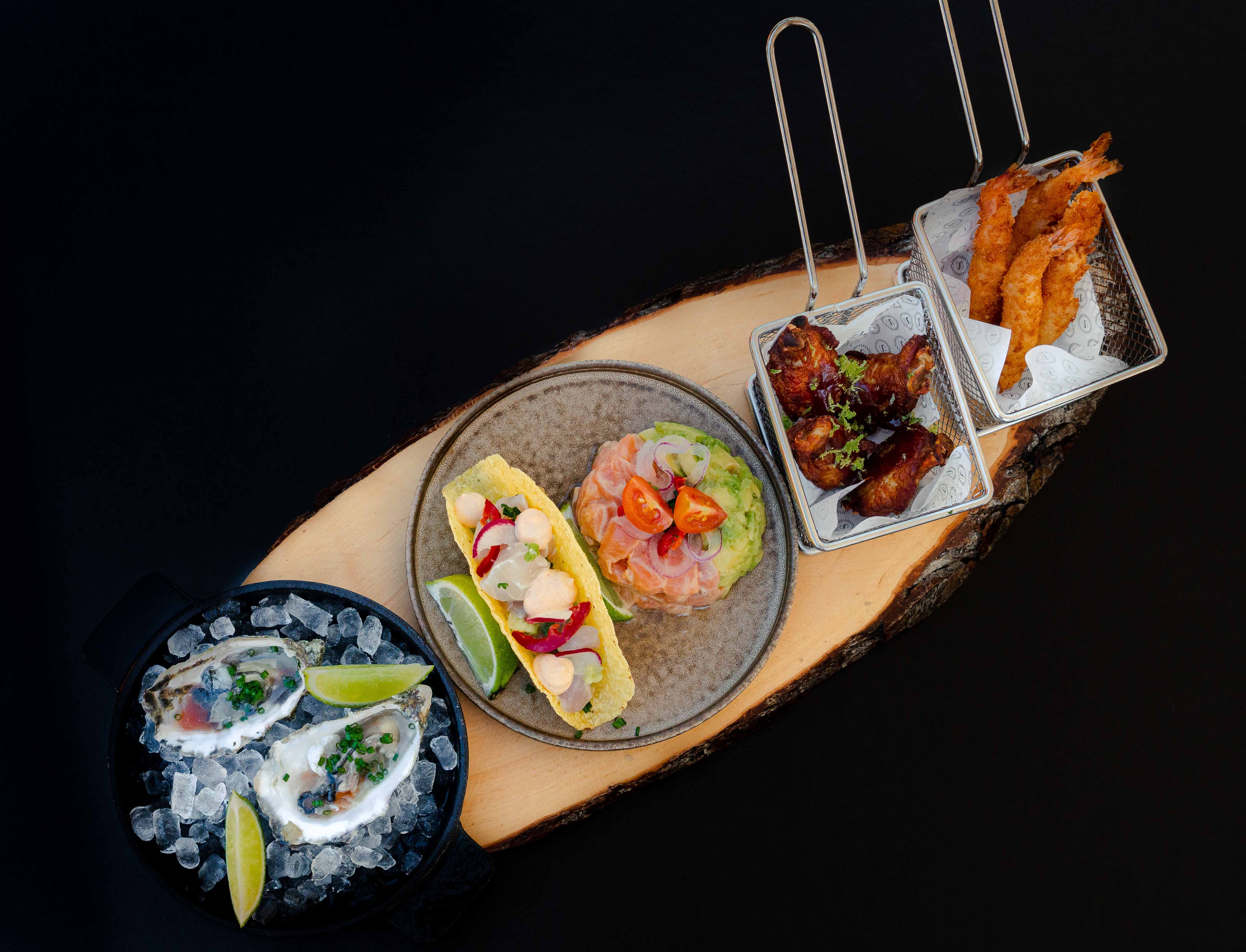 O almoço fica ao cuidado do restaurante Glass Terrace, que providencia um menu especial, assente em cinco petiscos e complementado com vinho, sumo ou água. Ostras com sumo de lima e tabasco, camarão panado, taco de corvina com malagueta e coentros, mini tártaro de salmão e abacate e asinhas de frango com molho barbecue e raspas de lima são as propostas, a rematar com um doce: ananás grelhado com lima.