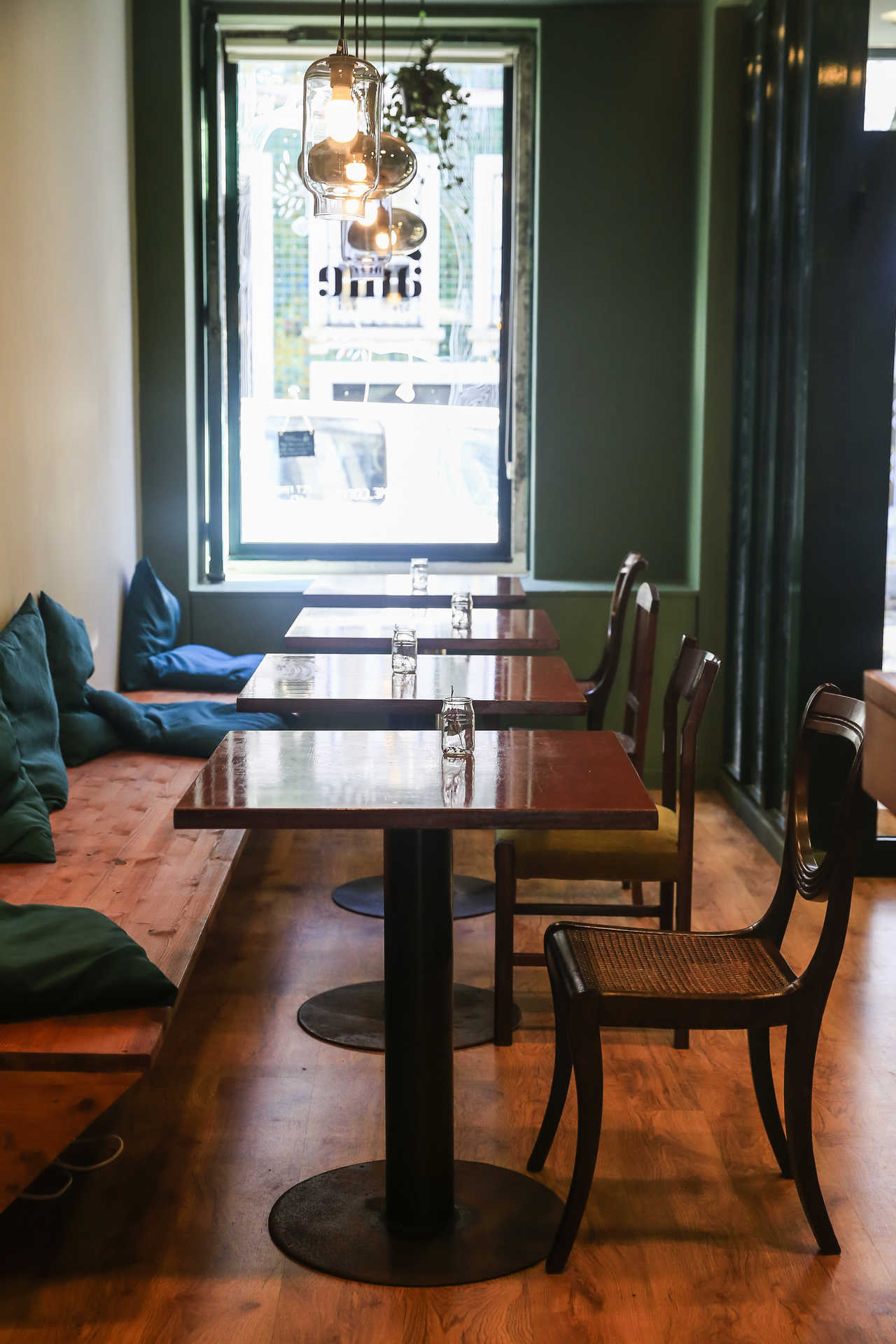 Para desfrutar de todas as especialidades da casa, o casal apostou num ambiente fresco e acolhedor, em tons de verde, com sofás e poltronas confortáveis, e plantas por todo o lado. Nas traseiras abre-se ainda um agradável pátio ajardinado, a convidar para uma chávena de café e uma fatia de bolo nos dias mais soalheiros.