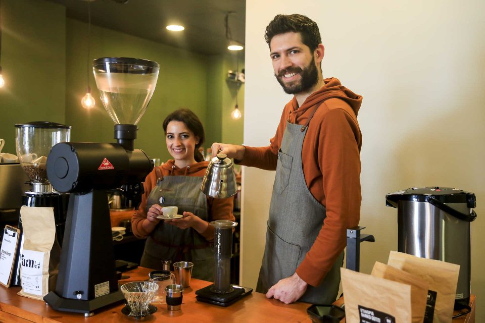 “Sentimos algo de bom aqui. Tudo se parecia muito com o Rio de Janeiro, a nossa cidade natal”, contam Mariana e André Dias. Foi esta sensação familiar que os fez escolher a zona do Bonfim para instalarem o seu novo projeto de vida. O casal trocou São Paulo, onde viviam, e os antigos ofícios – ela como designer de marcas e ele como dentista – para se dedicarem ao café de especialidade, num “espaço experimental, onde as pessoas podem conversar e criar conexões através do café”, assumem.