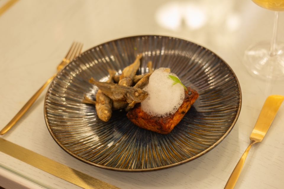 Nos pratos principais, a comitiva marítima é especialmente forte, brilhando os jaquinzinhos, um arroz de tomate frito crocante e ar de limão e coentros; o bacalhau à Zé do Pipo, onde a aparição do limão no puré é tão bem-vinda como a discreta maionese de wasabi sobre o fiel amigo; e açorda de camarão, sem necessidade de especiais invenções, cremosa e aproveitando os sabores do caldo de crustáceos. Quanto à carne, e além do frango de churrasco, do pato, da carne de porco à alentejana e do bife à portuguesa, apresenta-se um cabrito assado assente em arroz caldoso de cogumelos e jus de carne. Um trio de opções vegetarianas e variantes infantis completam o elenco. Volta-se às recriações ousadas numa aparição do pudim Abade de Priscos cuja cor escura e espessura evocam o caramelo, a que se junta gengibre e sorvete de yuzu; e em “A nossa rabanada”, com miso e tamarindo no elenco. Seguir-se-ão, em breve, os almoços executivos, também com Memória.
